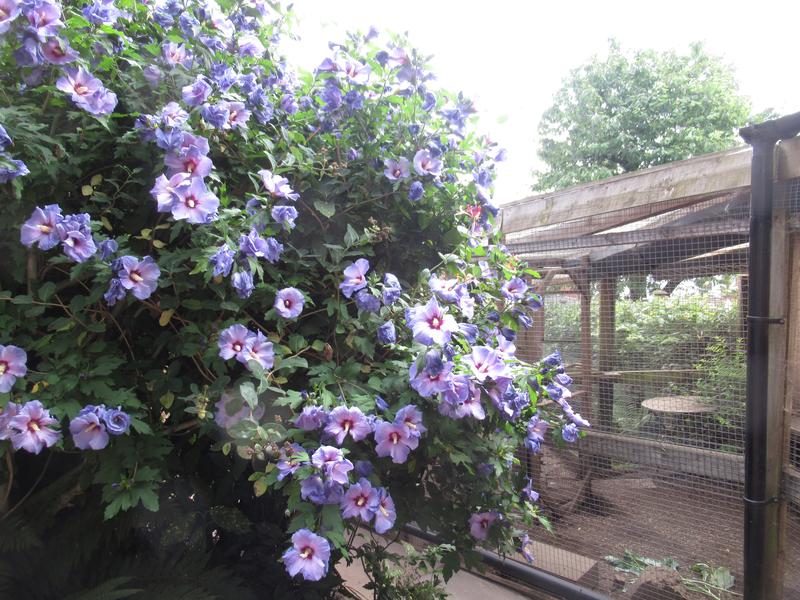 At this time of year our hibiscus is amazing. It is opposite the chicken run and towers over the chicken run height wise and has a mass of blooms.