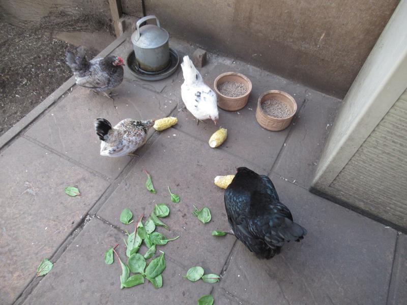 The corn cobs at the allotment are coming to an end and yesterday I gave the girls some that were not good enough for us.