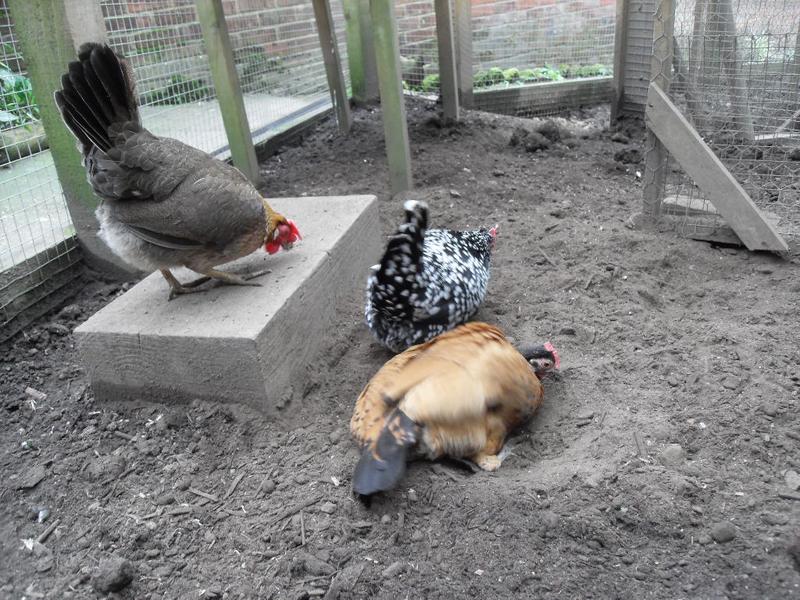 Meanwhile Honey was having a lovely dust bath and Speckles really wanted to join her. These two do seem to spend time together and have a bit of an alliance with each other. Peaches and Barley often chase Speckles from the dust bath and yesterday was no exception. I sometimes call them “the mean girls”.