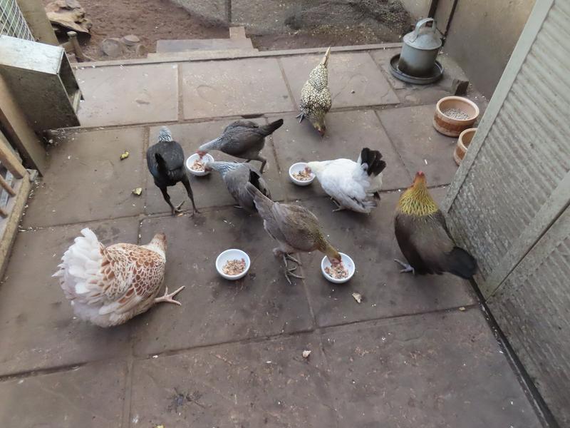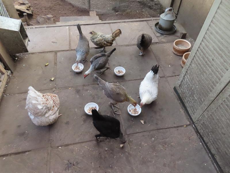 This morning I gave the girls a fish treat. It was another frosty morning and I thought they could do with a little protein boost. They spend so much time in the shelter when the weather is horrible that it is good to see them enjoying a treat.
