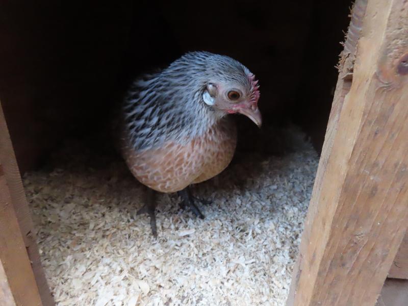 Today Silver laid her second egg, two days after her first egg. I knew she was ready to lay when she started going in the nest box. I thought I would try to get a photo of her in the nest box this time. The first photo I got of her she was standing just inside the nest box.