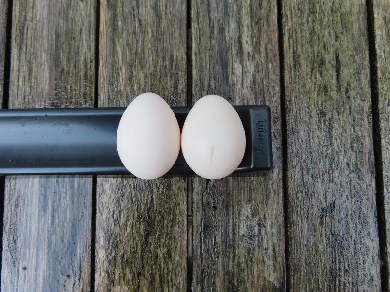 Silver’s second egg is on the left and her first egg is on the right. The second egg doesn’t have a blood streak on it which is good and is just a bit longer than her first egg.