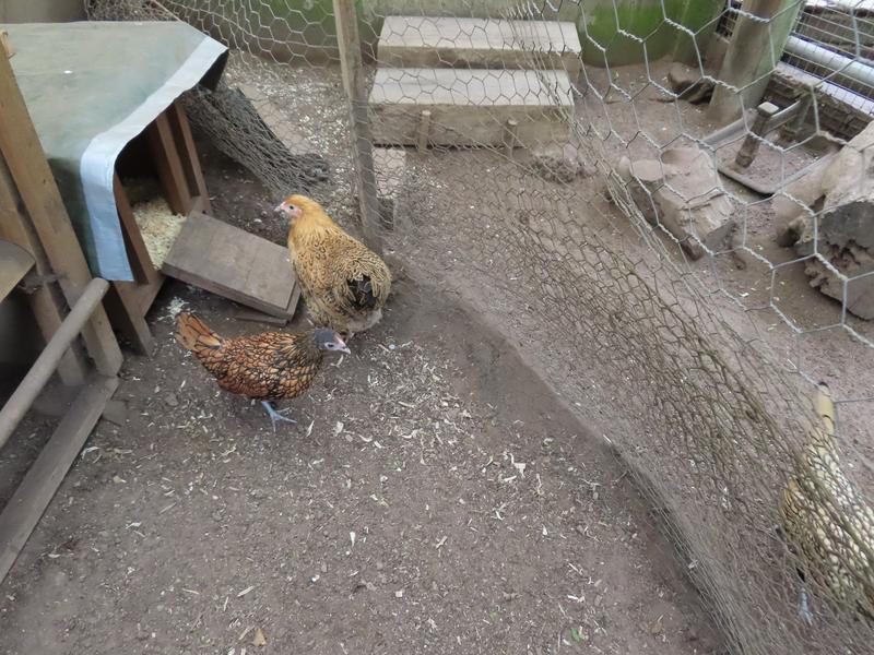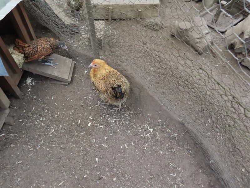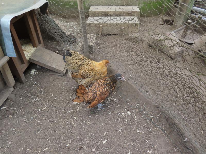 My new girls arrived at half past one today. They are a gold sebright who I have called Maple and a gold pencilled wyandotte who I have called Popcorn.