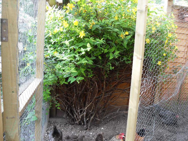 The girls also appreciate the hypericum in their run which they have also stripped of any leaves within jumping distance. It provides their favourite place to sit in shade and to scratch around in the evenings.