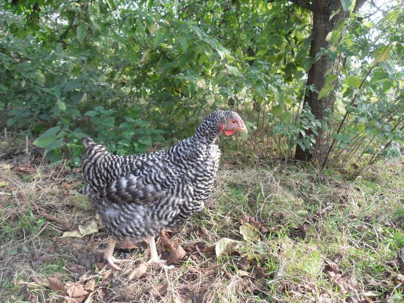 I went to the orchard which seems to be the chickens favourite place on the farm. At first I couldn’t see any chickens but then I spotted Pepper emerging from the undergrowth. Then Dotty appeared from under the yew tree.