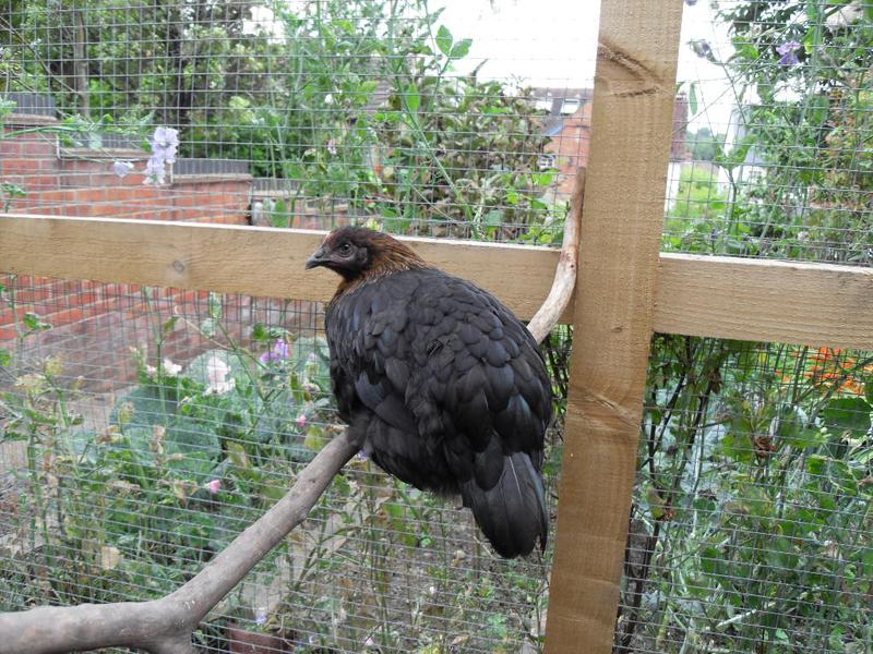 Dotty doesn’t have her grown up voice properly yet. She occasionally made a “boc” sound and we thought she was getting her grown up voice but it has never got any further than that. She still twitters with a baby sound. This is quite strange because we had both Pepper and Dotty about four and a half months ago and knew at the time that Dotty was a month younger. Pepper got her grown up voice within a few weeks but after all this time Dotty hasn’t. It is as if she is staying a baby. Pepper is so vocal and yet Dotty never goes “boc boc” just twitters, yet she is much older than Pepper was when she found her voice.